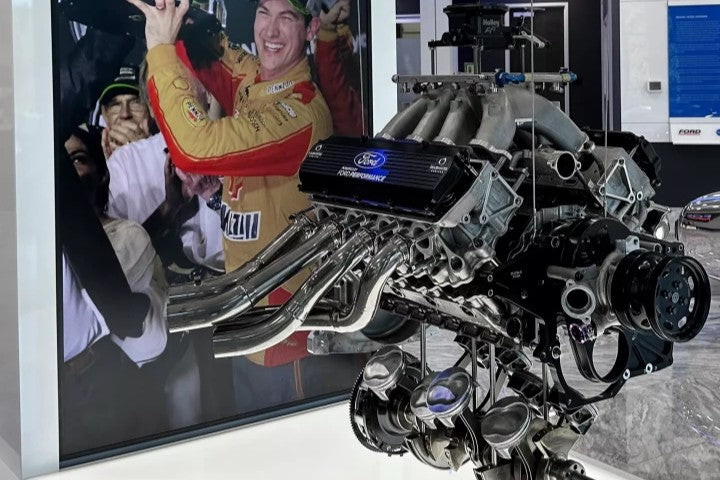 "Roush Yates reached out looking for a signature piece for their new private museum, bar, gym, office, and event space. They wanted guests to immediately feel the legacy of the FR9—the engine behind so much of their NASCAR success. The goal was simple: make the engine the hero the moment someone walks in."